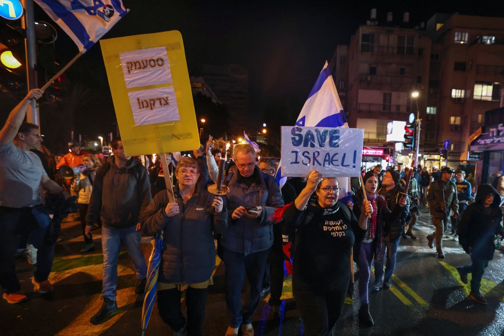 وتستمر حالة التخبّط التي تعيشها إسرائيل بعد تأليف الحكومة الأخيرة برئاسة نتنياهو، وفي هذا الإطار، تواجه البلاد حركات احتجاجية واسعة تعمّ المناطق، وخاصّة العاصمة، إذ تظاهر أكثر من 80 ألف إسرائيلي في تل أبيب احتجاجاً على خطط الحكومة الجديدة للقيام بإصلاحات قضائية، ومن شأنها أن تسهّل على البرلمان إلغاء أحكام تصدرها المحكمة العليا.