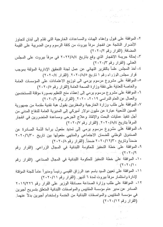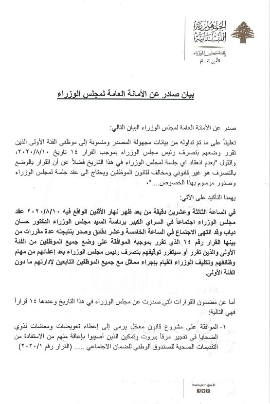 صدر عن الأمانة العامة لمجلس الوزراء البيان التالي: