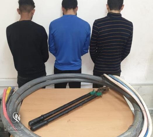 بتفتيشهم، ضُبِط بحوزتهم “كابل” كهربائي من النّحاس، ومقص حديدي كبير يُستخدم في قطع الأسلاك الكهربائية كبيرة الحجم.