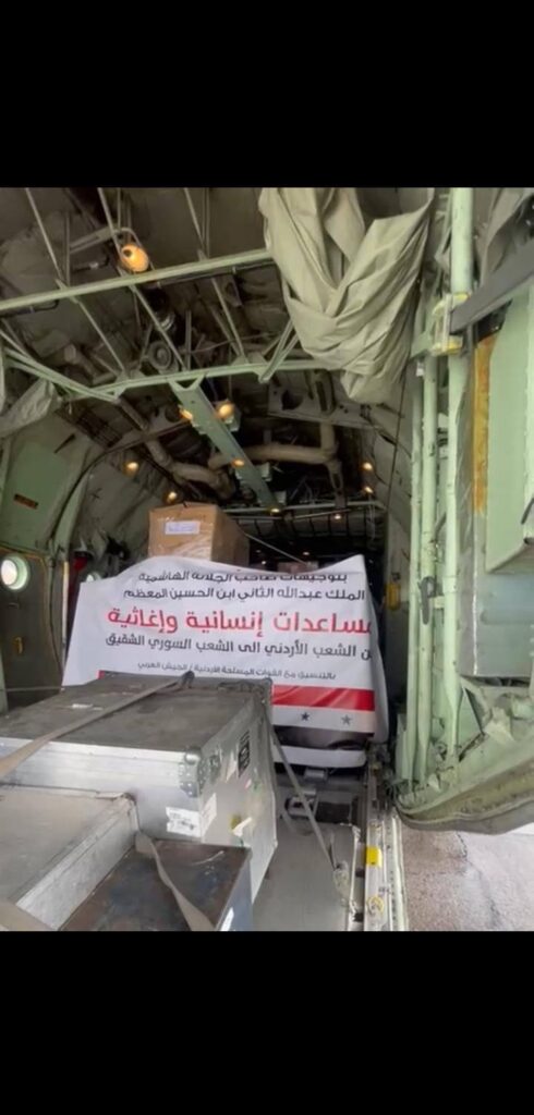 أفادت هيئة المساعدات الخيرية الأردنية، بأنها أرسلت منذ أمس 5 طائرات، محملة بالمساعدات الإغاثية إلى سوريا وتركيا، بناء على تعليمات الملك، عبد الله الثاني.ووفقا لبيان الهيئة، فإنها نسقت مع الجيش الأردني، وأرسلت اليوم، طائرة محملة بالمواد الإغاثية، والغذائية، والطبية، إلى مدينة اللاذقية في سوريا، وأنها سترسل طائرة أخرى إلى المناطق السورية المتضررة، إضافة إلى قوافل برية، ستتحرك خلال الأيام المقبلة إلى جميع المناطق المتضررة في سوريا.وأوضحت الهيئة، أن المساعدات تشمل، معدات إنقاذ، وخيام، ومعدات لوجستية، وطبية، ومواد غذائية، وطواقم إنقاذ، وأطباء من الخدمات الطبية الملكية.وصرح أمين عام الهيئة، حسين الشبلي، بأن الهيئة مستمرة بتلقي التبرعات النقدية والعينية، من خلال غرف الطوارئ التي شكلتها لجمع التبرعات.ودعا الشبلي الجهات والمؤسسات والأفراد المقتدرين للتبرع لإغاثة أسر المنكوبين، في سوريا وتركيا، ومد يد العون لهم في مصابهم.