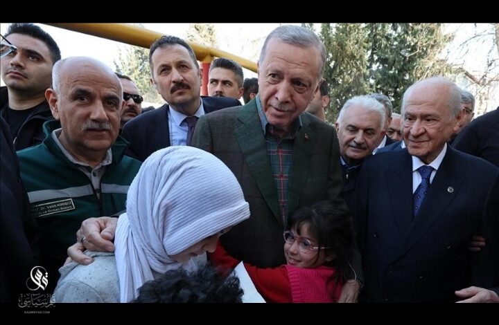 تفقد الرئيس التركي رجب طيب أردوغان، الثلاثاء، المخيمات التي أُنشأت للمتضررين من الزلزال في ولاية عثمانية جنوبي البلاد.