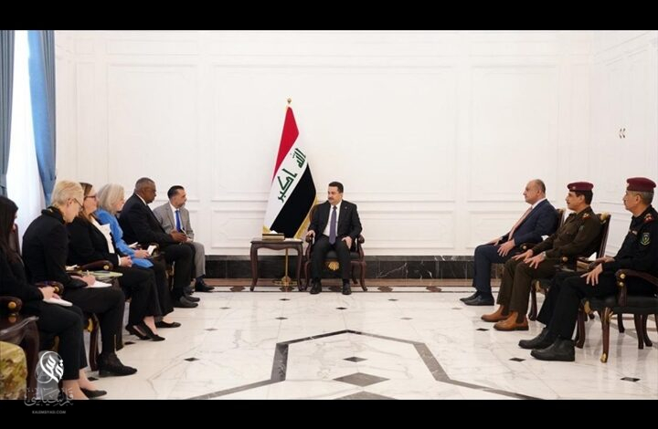 جاء ذلك خلال لقاء السوداني مع أوستن في زيارة غير معلنة المدة يجريها الأخير إلى بغداد، وفق بيان لمكتب رئيس الوزراء العراقي.