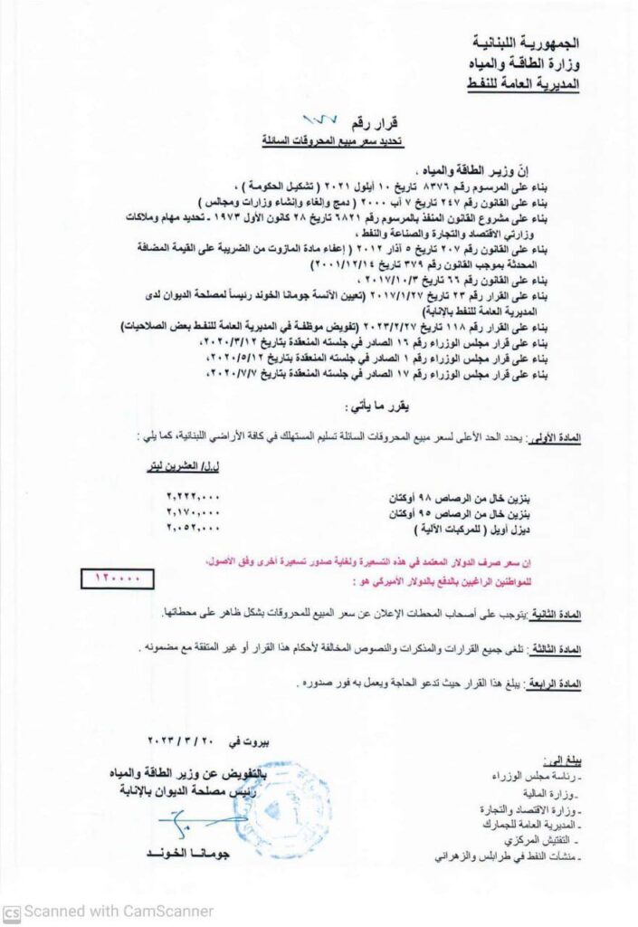 -المازوت : 2.052.000 ليرة لبنانيّة.