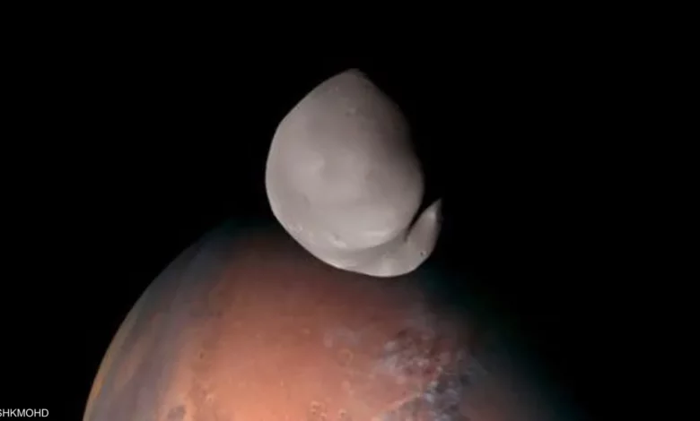 وكتب الشيخ محمد بن راشد على حسابه الرسمي بموقع “تويتر”: “في سابقة عالمية جديدة مشروع الإمارات لاستكشاف المريخ ’مسبار الأمل‘ يقترب لمسافة 100 كيلومتر من القمر التابع للمريخ “ديموس” .. ويلتقط أوضح صورة حصل عليها البشر لهذا القمر “.
