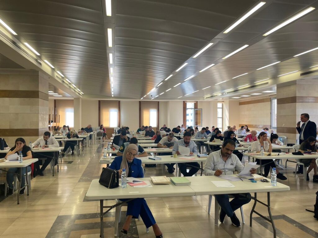 انطلقت صباح اليوم إمتحانات الترفّع إلى الجدول العام بحضور أعضاء مجلس النقابة الأساتذة : منير الحسيني، محمود هرموش، مروان ضاهر، باسكال أيوب، جمال اشراقية، مدير مركز التدرج والتدريب في النقابة الاستاذ طوني تاجر، واعضاء الهيئة الإدارية للمركز الأستاذين د.جورج احمر وزهرة الجسر، رئيسة الديوان رنا الشهال وموظفي النقابة، وذلك في قاعة ورش العمل في النقابة “.