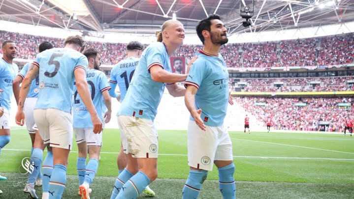 توج مانشستر سيتي السبت بكأس الاتحاد الإنكليزي لكرة القدم على حساب غريمه مانشستر يونايتد بتغلبه عليه في نهائي ملعب ويمبلي 2-1. وبذلك يحقق ‘السيتيزنز” ثناية محلية بجمعه لقب الدوري مع الكأس . وبإمكان لاعبي المدرب الإسباني بيب غوارديولا تحقيق ثلاثية تاريخية في حال فوزهم في نهائي دوري أبطال أوروبا على حساب إنتر ميلانو السبت المقبل.