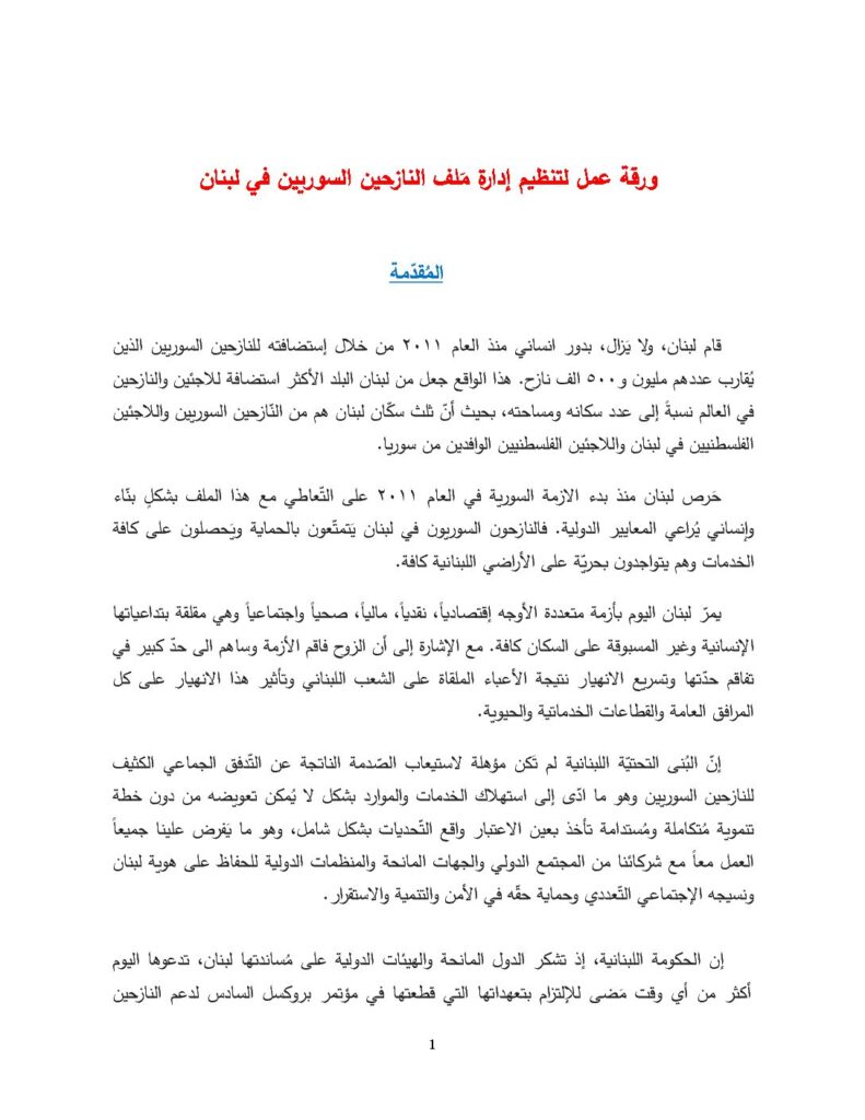 أقرّ مجلس الوزراء في جلسته التي عقدت في السراي أمس، ورقة عمل لتنظيم إدارة ملف النازحين السوريين.