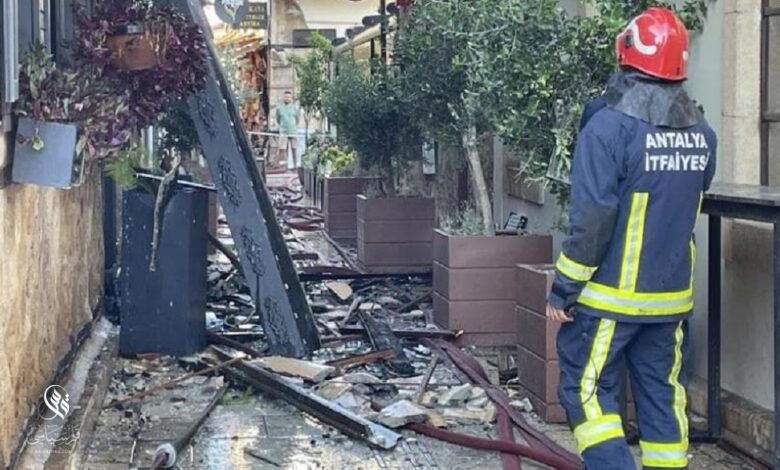 وتوجّه رجال الإطفاء والشرطة والفرق الطبية إلى المنطقة بعد أن تصاعد الدخان في الفندق المكون من طابقين في شارع Fikirçı في منطقة Kaleiçi التاريخية، وتمكنوا من إخماده، كما تم نقل الجرحى الى المستشفيات لتلقي العلاج.