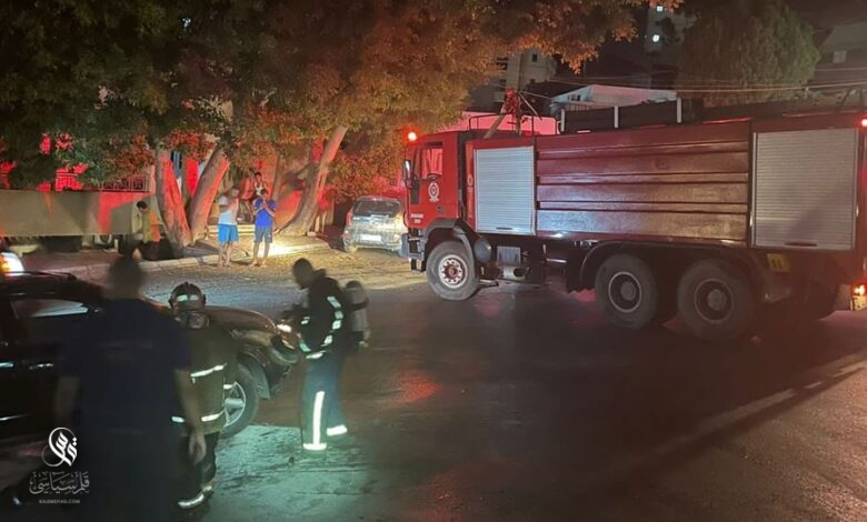 إخماد حريق داخل سيارة في حارة صخر