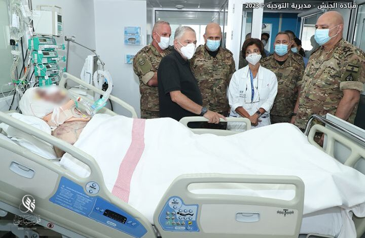 تفقّد قائد الجيش العماد جوزاف عون في مستشفى أوتيل ديو المعاون الجريح أحمد صيدح الذي أصيب في حادث تحطم طوافة عسكرية في منطقة حمانا، واطّلع على وضعه الصحي منوهًا بشجاعته في أداء مهمته، ومتمنيًا له الشفاء العاجل.