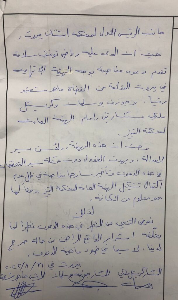 بالصورة: القاضي شعيتو يتنحى في دعوى مخاصمة سلامة