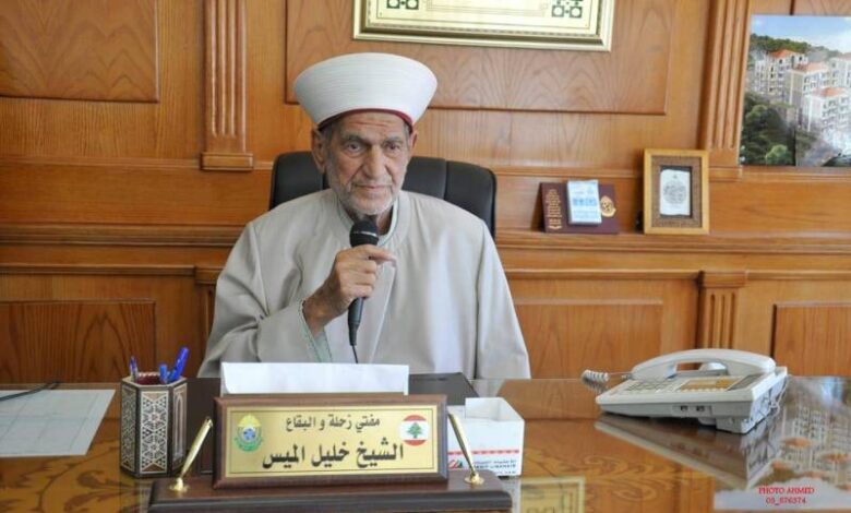غيّب الموت مفتي زحلة والبقاع العلامة الشيخ خليل الميس، بعد صراع مع المرض.