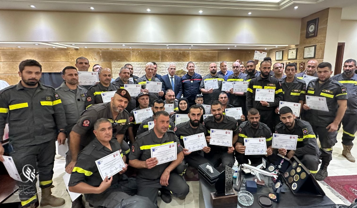 خطار يسلم إفادات لعناصر الدفاع المدني اختتاماً لدورة تدريبية