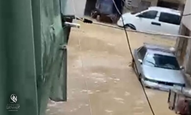 بالفيديو- نهر الغدير يفيض في الاحياء السكنية والمياه تغمر السيارات