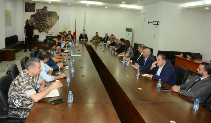 وبحث المجتمعون في مختلف الاوضاع العامة في الشمال، لا سيما الموضوع المتعلق بالنازحين السوريين، وتنفيذ كتب وتعاميم وزير الداخلية والبلديات القاضي بسام مولوي، عقب اجتماعه مع المحافظين وقادة الاجهزة الامنية، وتتضمن هذه التعاميم إطلاق حملة مسح وطنية لتعداد وتسجيل النازحين السوريين، والقيام بتسجيل كافة النازحين السوريين المقيمين ضمن نطاق كل بلدية وبلدة، والطلب الى المخاتير كافة عدم تنظيم أي معاملة أو إفادة لأي نازح سوري قبل ضم ما يُثبت تسجيله في البلدية، وإجراء مسح ميداني لكافة المؤسسات والمهن الحرة التي يديرها النازحون السوريون والتثبت من حيازتها التراخيص القانونية.