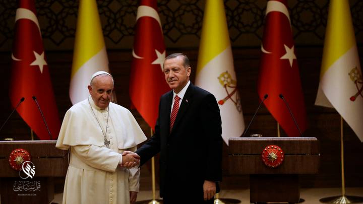 أجرى الرئيس التركي رجب طيب أردوغان اتصالاً هاتفياً مع البابا فرنسيس بابا الفاتيكان الخميس، لبحث الصراع الفلسطيني-الإسرائيلي والانتهاكات الخطيرة المتزايدة لحقوق الإنسان في المنطقة.