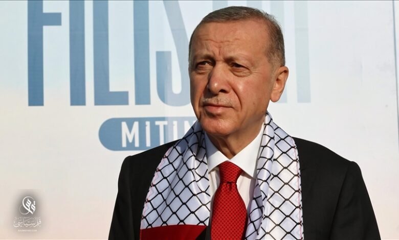 ولفت الرئيس التركي إلى مشاركة نحو 1.5 مليون شخص في “تجمع فلسطين الكبير” الذي أقيم اليوم بمدينة إسطنبول.