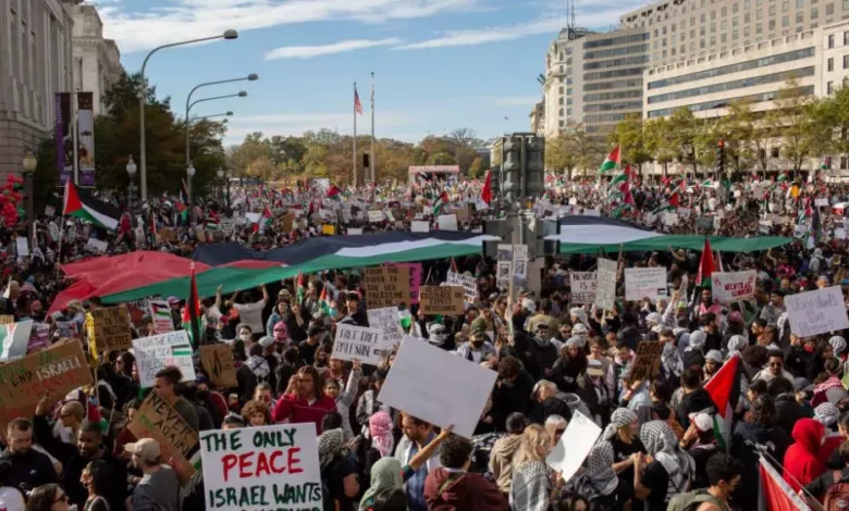 أما في العاصمة الأميركية واشنطن، فقد شهدت مظاهرة قال منظموها إنها أكبر مظاهرة مؤيدة للقضية الفلسطينية في تاريخ الولايات المتحدة، حيث شارك فيها نحو 300 ألف شخص، وفق المنظمين.