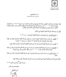– ان هذا الاصدار لا علاقة له بحجم النقد المتداول الذي يبقى محصورا بالسياسة النقدية المعتمدة من مصرف لبنان.
