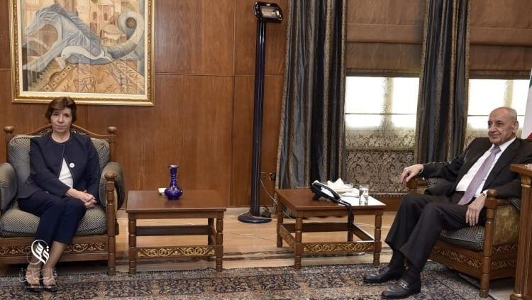 استقبل رئيس مجلس النواب نبيه بري في مقر الرئاسة الثانية في عين التينة وزيرة خارجية فرنسا كاترين كولونا، في حضور مديرة أفريقيا الشمالية والشرق الاوسط في الخارجية الفرنسية آن غريو وعدد من المستشارين في الخارجية الفرنسية والسفير الفرنسي لدى لبنان هيرفي ماغرو ، حيث تم عرض للاوضاع العامة في لبنان والمنطقة على ضوء تصاعد العدوان الإسرائيلي على قطاع غزة ولبنان.