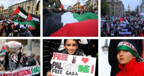 التظاهرات تعم العواصم والمدن العالمية تنديداً بالعدوان الإسرائيلي