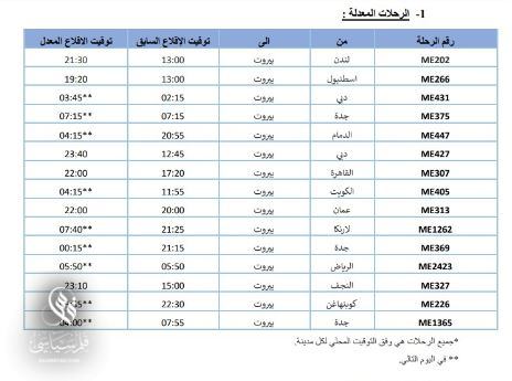 جدول رحلات طيران الشرق الأوسط العائدة الى بيروت