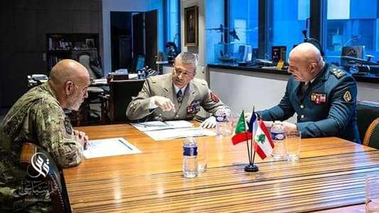 ولفت المصدر إلى ان «مشاركة العماد عون في اجتماع لدعم الجيش بدعوة من رئيس أركان الجيوش الفرنسية الجنرال تيري بورغارد، وبحضور رئيس أركان الدفاع الإيطالي الجنرال سافو دراغون، تخلله عرض من قبل قائد الجيش لوضع المؤسسة العسكرية خلال المرحلة الحالية وحاجاتها المختلفة من أجل الاستمرار في أداء مهماتها الوطنية، وسط التحديات المتزايدة والظروف الدقيقة داخليا وعلى مستوى المنطقة، وفق جدول أولويات ملحة سبق وان عرضه في اجتماع روما الماضي، واللافت حماسة كل من نظيريه الفرنسي والإيطالي للتجاوب مع لائحة الطلبات الأساسية للجيش، واعتبارهما أن الجيش يقوم بدور بالغ الأهمية في حماية أمن لبنان واستقراره. وقد شددا على ضرورة دعمه بمختلف السبل وتمكينه من تجاوز الصعوبات القائمة، مؤكدين أن دعم سيادة لبنان يبقى أولوية بالنسبة إلى فرنسا وإيطاليا، مع التشديد على أهمية دور «اليونيفيل» واستمرار التعاون والتنسيق بينها وبين الجيش ضمن إطار القرار 1701، ما يسهم في خفض التوتر في جنوب لبنان خلال الظروف الاستثنائية الراهنة».