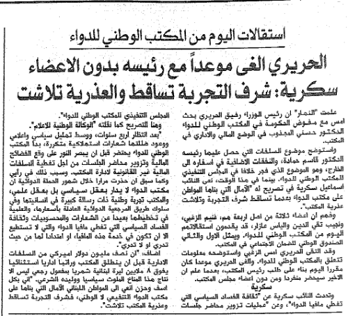 وبقيت الشعارات والنيّة موجودة في إنشاء هذا المكتب وتعيين أعضاء حتى العام 1995، وتقرر رصد 30 مليار ليرة #لبنانية لتأسيس مكتب الدواء الذي كان يُتوقع منه تخفيض الفاتورة الدوائية بنسبة تتراوح بين 30 إلى 40 في المئة.