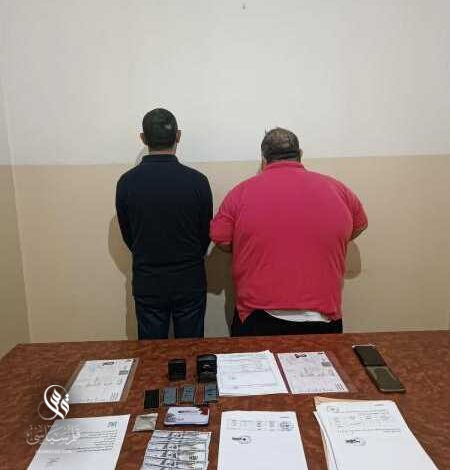 بتفتيشهما، ضبط بحوزتهما أربعة أختام مزوّرة، مستندات ومعاملات رسمية مزوّرة، ومبلغ 800 دولار أميركي مزيّف.