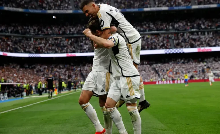 ضمِن ريال مدريد لقب بطل الدوري الإسباني لكرة القدم للمرة الـ36 في تاريخه بفوزه الكبير على ضيفه قادش 3-صفر وخسارة مطارده المباشر وغريمه التقليدي برشلونة حامل اللقب أمام جاره ومضيفه جيرونا 2-4 اليوم السبت.