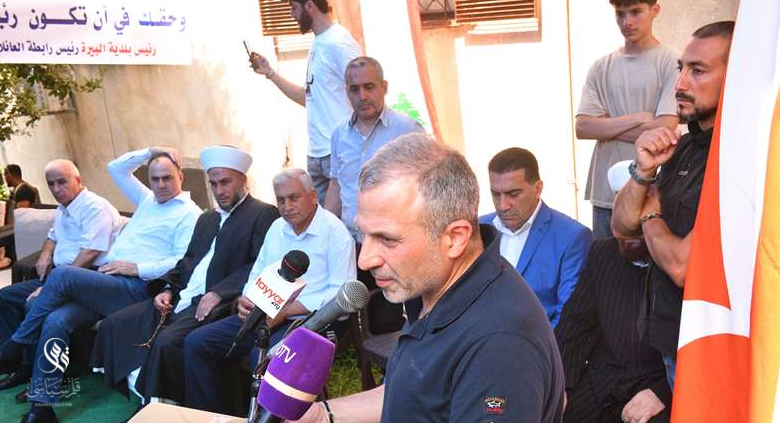 كلام باسيل جاء خلال لقاء شعبي في منزل رئيس بلدية البيرة محمد وهبي، حيث أضاف أنه “لا تمر فترة الا ونمر على البيرة، واليوم نلتقي لاننا نشبه بعضنا بالتفكير، وهذا يظهر في الأزمات الصعبة”.