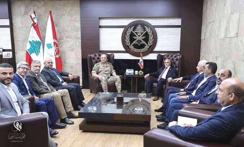 وفي الختام، قدم الوفد درع الفيحاء لقائد الجيش تكريما له ولدوره الرائد ووقوفه الى جانب طرابلس واهلها.