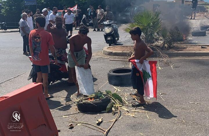 بالصورة – قطع طريق الجناح بالاطارات المشتعلة