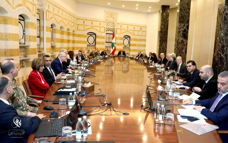 وكان مجلس الوزراء قد عقد أمس جلسة عادية في القصر الجمهوري في بعبدا برئاسة الرئيس عون وحضور رئيس الحكومة نواف سلام والوزراء. وانتهت الجلسة الى إقرار التشكيلات الديبلوماسية. وقال وزير الإعلام بول مرقص خلال تلاوته مقررات الجلسة، انّ رئيس الحكومة شدّد خلال الجلسة على «ضرورة الحؤول دون توريط لبنان في أي شكل من الأشكال بالحرب الدائرة، لما يترتب علينا من تداعيات لا علاقة لنا بها. وذكّر بأنّه طلب من الرئيس الفلسطيني محمود عباس وضع المقررات بخصوص السلاح الفلسطيني موضع التنفيذ»، موضحاً أنّه لم يحدّد أي موعد رسمي بشأن تسليم السلاح.
