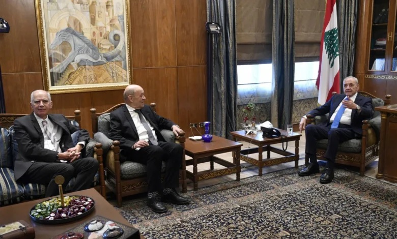 استقبل بري لودريان والوفد المرافق، في حضور السفير الفرنسي لدى لبنان هيرفية ماغرو. وتناول اللقاء الذي استمر أكثر من ساعة، بحسب بيان صادر عن رئاسة البرلمان، تطورات الأوضاع العامة في لبنان والمنطقة والمستجدات السياسية والميدانية على ضوء مواصلة إسرائيل لاعتداءاتها على لبنان، إضافة للعلاقات الثنائية بين لبنان وفرنسا.