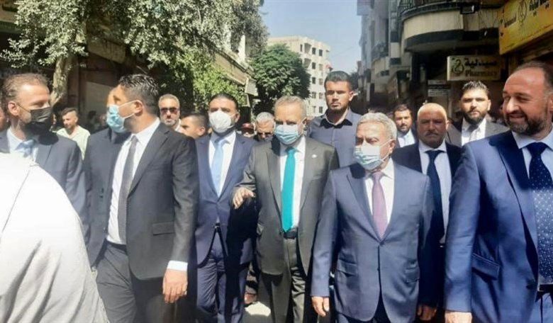ثمّ انتقل أرسلان والشيخ الغريب والوفد المرافق إلى قصر المؤتمرات حيث أولم وزير شؤون رئاسة الجمهورية منصور عزّام على شرفهم، بحضور عدد كبير من الشخصيات أبرزهم: شيخ العقل الشيخ يوسف جربوع، شيخ العقل الشيخ حمّود الحنّاوي، وزير الإدارة المحلية والبيئة حسين مخلوف، وزير الشؤون الاجتماعية والعمل محمد سيف الدين، وزير السياحة محمد رامي مارتيني، وزير التعليم العالي السابق كمال شرف، أعضاء مجلس الشّعب: رئيس لجنة الصداقة السورية اللبنانية أحمد مرعي، معين نصر، الأمير نشأت الأطرش، اللواء نسيب أبو محمود، حكمت سلاّم، خالد كرباج، فيصل جمّول، المحامي العام بالسويداء فؤاد سلّوم ورضا الدمقسي، السفير السوري لدى لبنان علي عبد الكريم علي، الأمين العام للمجلس الأعلى اللبناني السوري نصري الخوري، نقيب الأطباء في سورية كمال عامر، قاضي المذهب جمال منذر، شيخ الأوقاف في السويداء الشيخ نجدو العلي، الأمير لؤي الأطرش، الدكتور يحيى عامر، المشايخ الأفاضل: هيثم كاتبة، أبو فهد دبوس، كمال شاهين، سلمان كبول، أنيس الحاج علي، أبو حسين محمود أبو الخير، بالإضافة إلى مسؤول مكتب الجولان في رئاسة مجلس الوزراء مدحت صالح، والدكتور إحسان عز الدين، والدكتور إياد أبو عسلي وحسن جربوع.