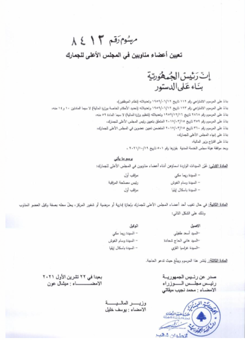 عون يعيّن زوجة بدري ضاهر مراقباً أول بالمجلس الأعلى للجمارك