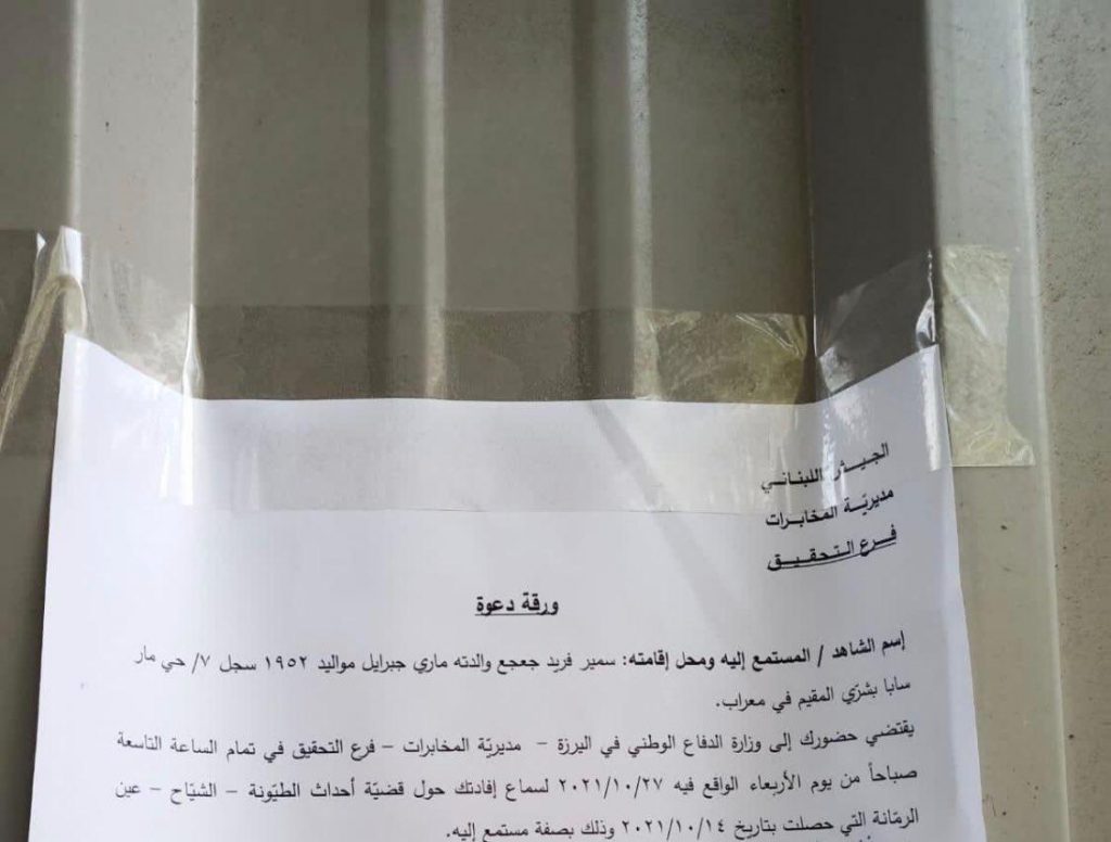 تمّ استدعاء رئيس حزب “القوات اللبنانية” سمير جعجع إلى فرع التحقيق في مخابرات الجيش في وزارة الدفاع في اليرزة، للإستماع إلى إفادته حول قضية أحداث الطيونة، نهار الاربعاء 27 تشرين الاول، وذلك بصفة مستمع إليه.