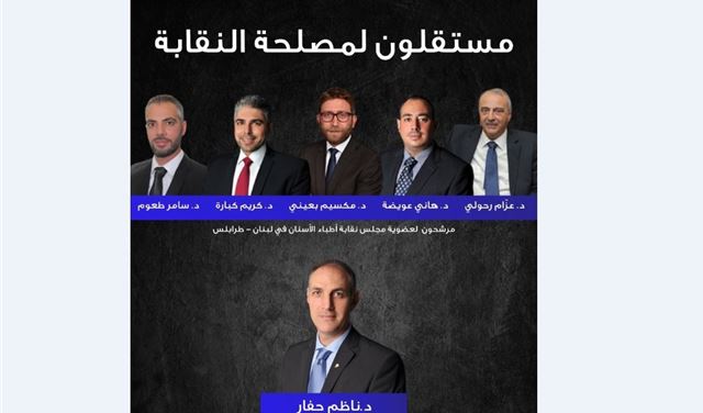 صدرت نتائج إنتخابات نقابة أطباء الأسنان في الشمال, وقد أتت على الشكل التالي: 4 مستقلين و3 تيارات سياسية.وتوزّعت الأسماء والأصوات كما يلي: ناظم حفار نقيب, هاني عويضة (192 صوت), مكسيم بعيني (172 صوت), كريم كبارة (168 صوت).
