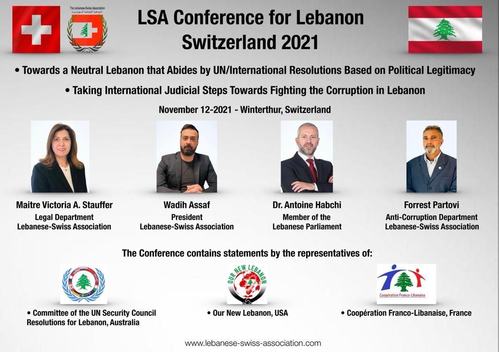 عقدت الجمعية اللبنانية السويسرية LSA مؤتمرها الثالث في زوريخ في سويسرا بمشاركة عضو تكتل “الجمهورية القوية” النائب أنطوان حبشي (من لبنان)، ممثل عن لجنة تطبيق قرارات الأمم المتحدة الدولية المتعلقة بلبنان بيار السخن (من أستراليا)، ممثل عن منظمة Our New Lebanon ادي كريم ( من الولايات المتحدة الاميركية)، ممثل عن الجمعية التعاونية الفرنسية اللبنانية روجيه سعد (من فرنسا) الى جانب رئيسة الجمعية اللبنانية السويسرية ڤكتوريا عبود شتاوفر وعضوي الهيئة الادارية وديع عساف وفوررست بارتوڤي.