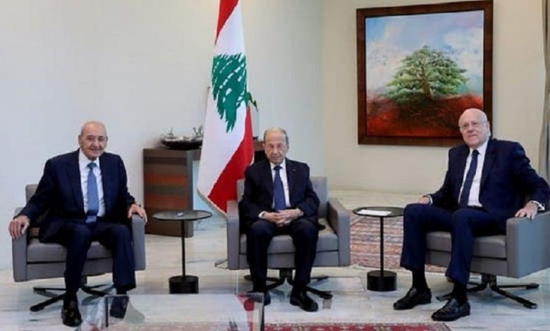 في لقاء الاستقلال الثلاثي، بحث عون وبري ورئيس الحكومة نجيب ميقاتي، في موضوعين أساسيين، الأوّل هو الذي يعطّل اجتماع مجلس الوزراء ويتعلّق بإصرار «الثنائي الشيعي» على إيجاد حلّ لطريقة عمل بيطار، والثاني درس طريقة معالجة أزمة استقالة قرداحي.