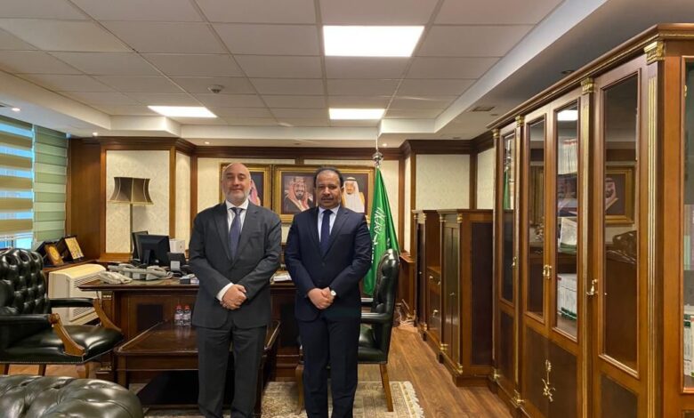 قنصل لبنان العام في إسطنبول مازن كبارة أثناء زيارته لقنصل العام للمملكة العربية السعودية في إسطنبول أحمد العقيل في مبنى القنصلية العامة السعودية في إسطنبول