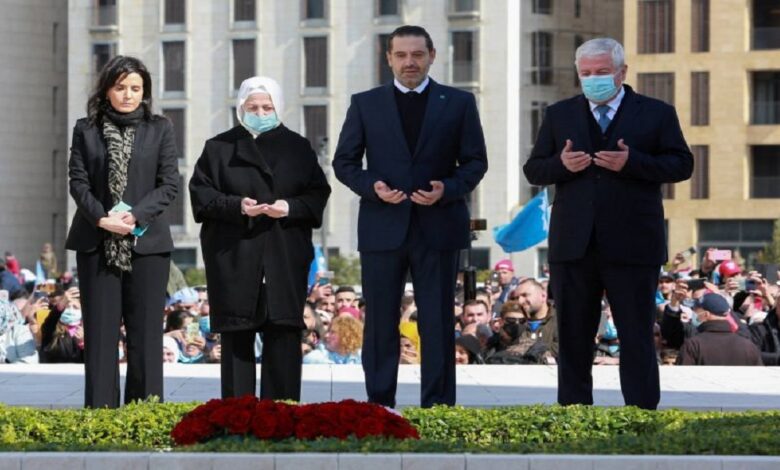 أما الجمهور، فزحف في عيونه وصوته دمعة وغصّة مزدوجة وهو يحْيي ذكرى الحريري الذي سُفك دمه في قلب بيروت التي «أحبها حتى الموت»، ويحيّي الحريري الابن ويعلن تأييده والتضامن معه في خياره المُرّ الذي تكاتفتْ في الوصول إليه تراكماتُ مرحلة سياسيةٍ طبعتْها مكاسراتٌ ساخنة تارة وباردة تارة أخرى، في سياق محاولة منْع وضْع لبنان في «فم البركان» الإقليمي وتقويض توازنه الداخلي وإدخال «تعديلات جينية» على نظام الطائف، وأيضاً خلافات شقّت طريقها إلى صفوف الحلفاء (في ما كان يُعرف بقوى 14 آذار) الذين تفرّقوا وتَشاركوا الانجرار إلى «ملاعب الخصوم» وخياراتهم وتَبادُل بالحدّ الأدنى… النكايات.