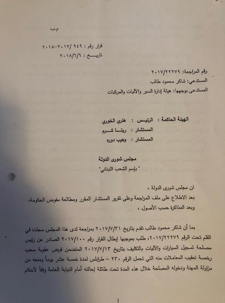 الأمر الذي دفع الأخير بتقديم مذكرة ربط نزاع أمام مجلس شورى الدولة للطعن بالقرار المذكور ، ليصدر قرار المجلس بوقف تنفيذ القرار المطعون فيه و ذلك بتاريخ ١٨ كانون الأول ٢٠١٨