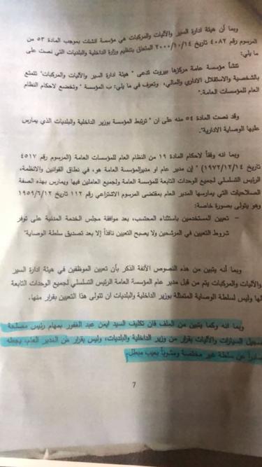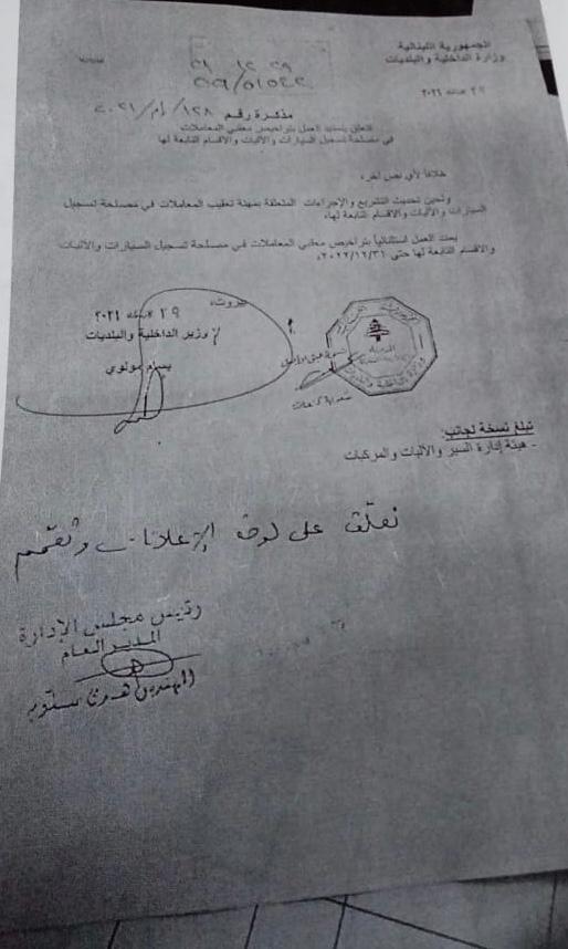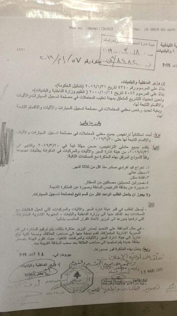 و ذلك أنه بالإضافة لإعطاء التراخيص لأشخاص يفتقدون المعايير القانونية للمهنة ، أن إعطاء هذه التراخيص يعد مخالفة للقانون و ذلك لأن مهنة تعقيب المعاملات هي مهنة ملغاة بحكم قانون السير منذ العام ٢٠١٢ و إعطاء تراخيص لها و تمديدها كما حصل الآن في عهد الوزير الحالي هو مخالفة جسيمة للقانون … سائلاً أنه بحال إعطاء هذه التراخيص بذريعة الأوضاع المعيشية الصعبة فلما تم إعطائها بشكل إنتقائي و لأشخاص تابعين لفئة محددة ؟ أم أن الوزير أعطاها كرشاوي لمصالح إنتخابية لجهة معينة ؟