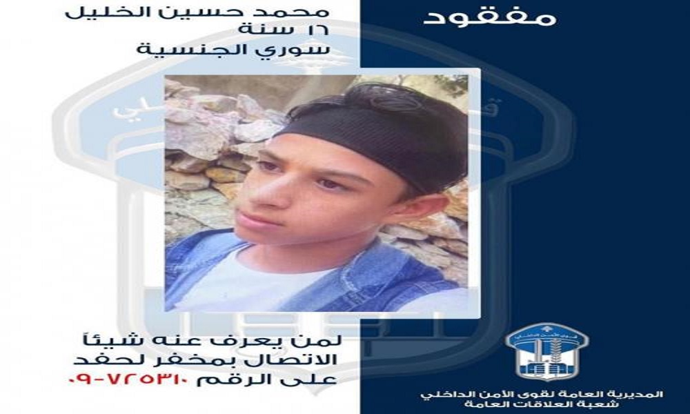 لذلك، يرجى من المواطنين الكرام الذين شاهدوه أو لديهم أي معلومة عنه أو عن مكان وجوده، الاتصال بمخفر لحفد في وحدة الدرك الاقليمي، على الرقم: 725310-09، للإدلاء بما لديهم من معلومات”.
