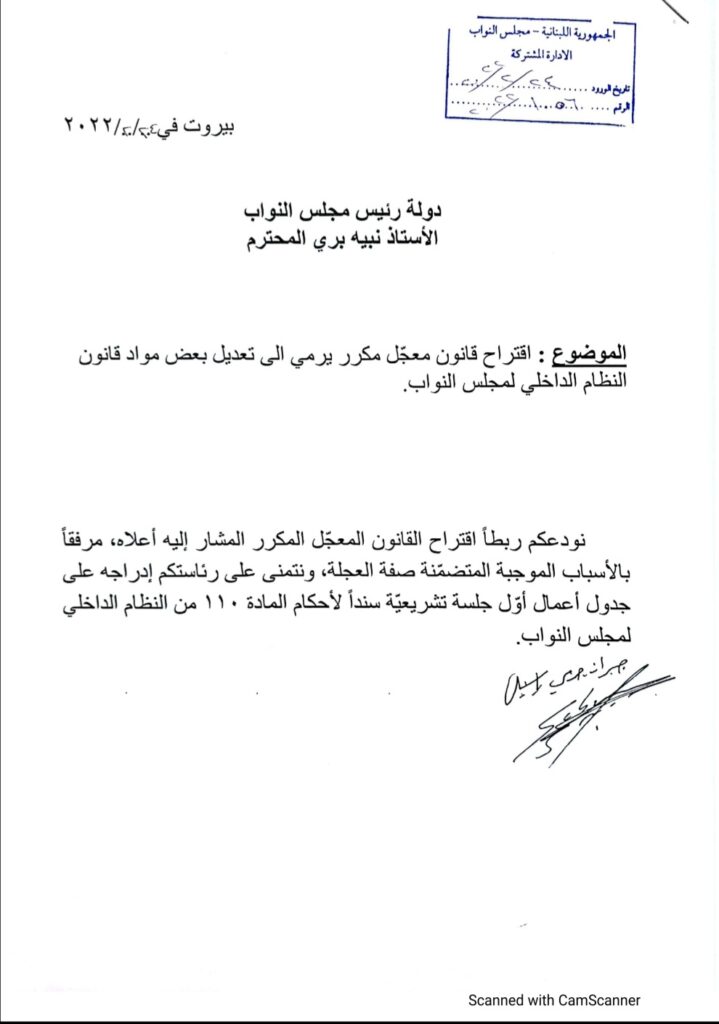 إقتراح قانون من لبنان القوي لتعديل مواد من قانون النظام الداخلي لمجلس النواب