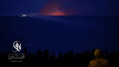 استمرار اندلاع النيران جراء القنابل الفوسفورية في منطقة جل العلم خراج الناقورة