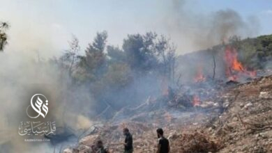 حريق كبير في أطراف الناقورة بعد إلقاء مسيرة مواد حارقة